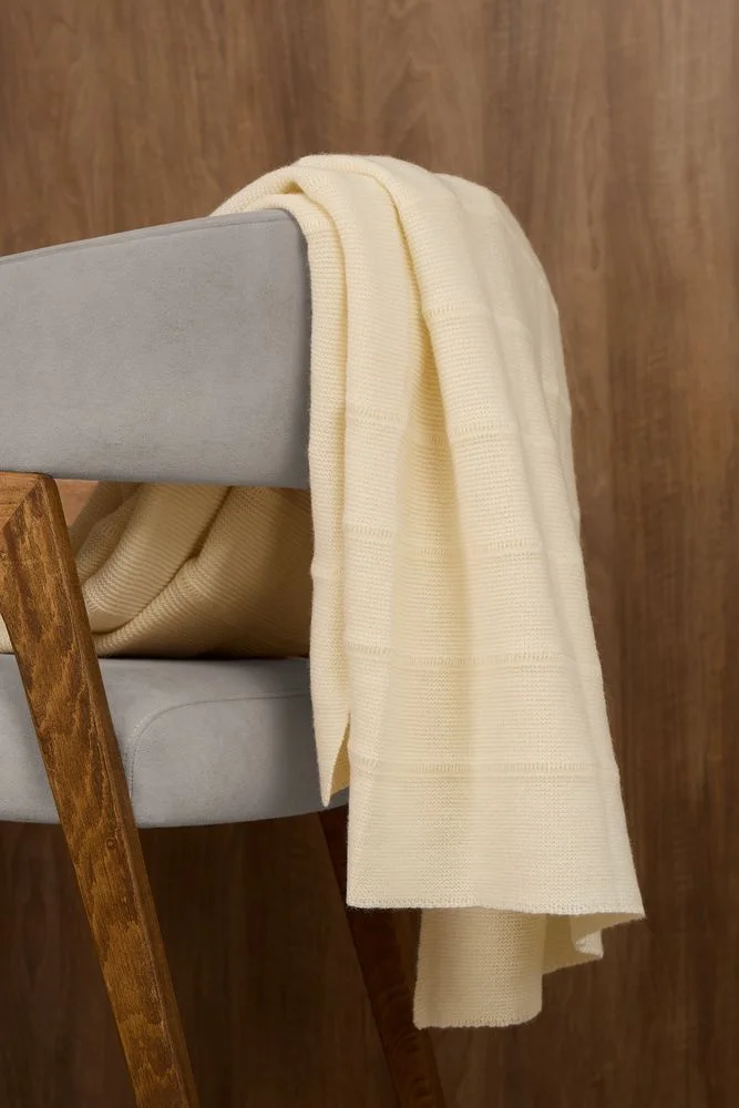 Лаконичный плед Nessona создан для ценных мгновений, сотканных из нежности и уюта. Необычная плотная вязка — плед украшен тонкими валиками разной длины — добавляет изделию оригинальности, делая его особо приятным не только визуально, но и тактильно.